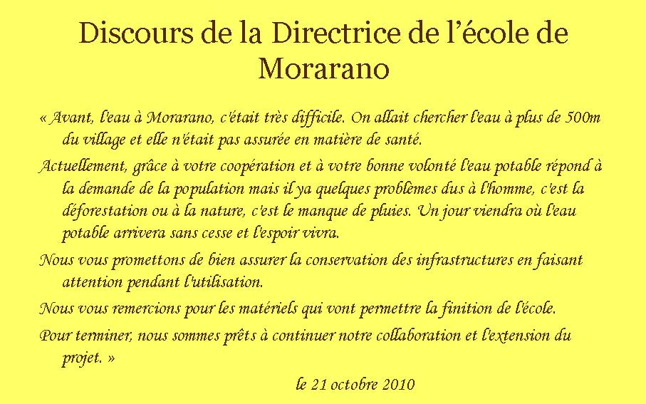 Lors de la visite de Suzanne et Jean-Marc Spiedel en octobre 2010, Le montant de la recette de la brocante d'Epinay a servi à équiper une école (peinture, faux plafond ..) travaux réalisés en octobre .